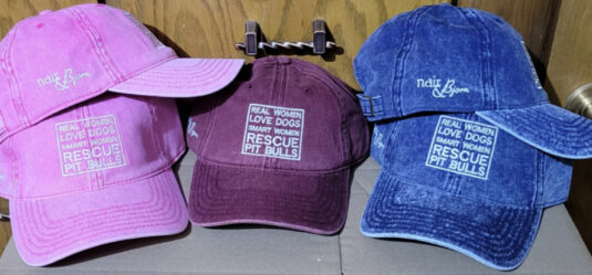 Our popular Smart Women Design is now available on a hat. Made of snow washed cotton and embroidered with Real Women Love Dogs Smart Women Rescue Pit Bulls. Also, includes our Nair & Bjorn logo on the side.